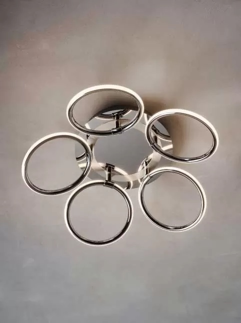 Plafoniera din familia Halo, cu un design modern și finisaj crom, este ideală pentru living, dormitor sau spații HoReCa. Realizată din aluminiu, se montează aplicat pe tavan și include LED integrat cu un consum de 25W și un flux luminos de 410 lm, oferind lumină caldă (3000K). Iluminează eficient o suprafață de 2 mp. Dimensiuni: 433 x 132 x 446 mm, protecție IP20, destinată pentru interior.