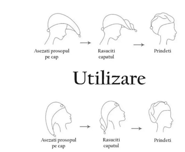 -prosopul este usor de utilizat, se fixeaza prin rasucire, textura este moale si confortabila, tesatura este foarte absorbanta. potrivit pentru toate tipurile de par.