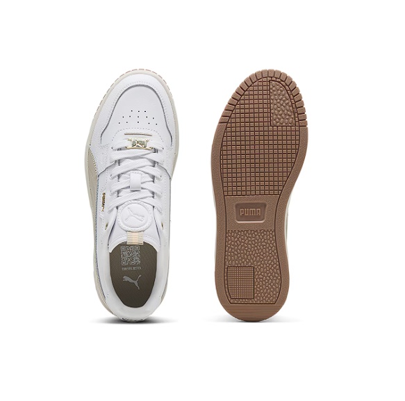 Puma, Pantofi sport de piele si piele ecologica Carina Street Lux, Alb, Maro camel, 38, Resigilat, Grad A