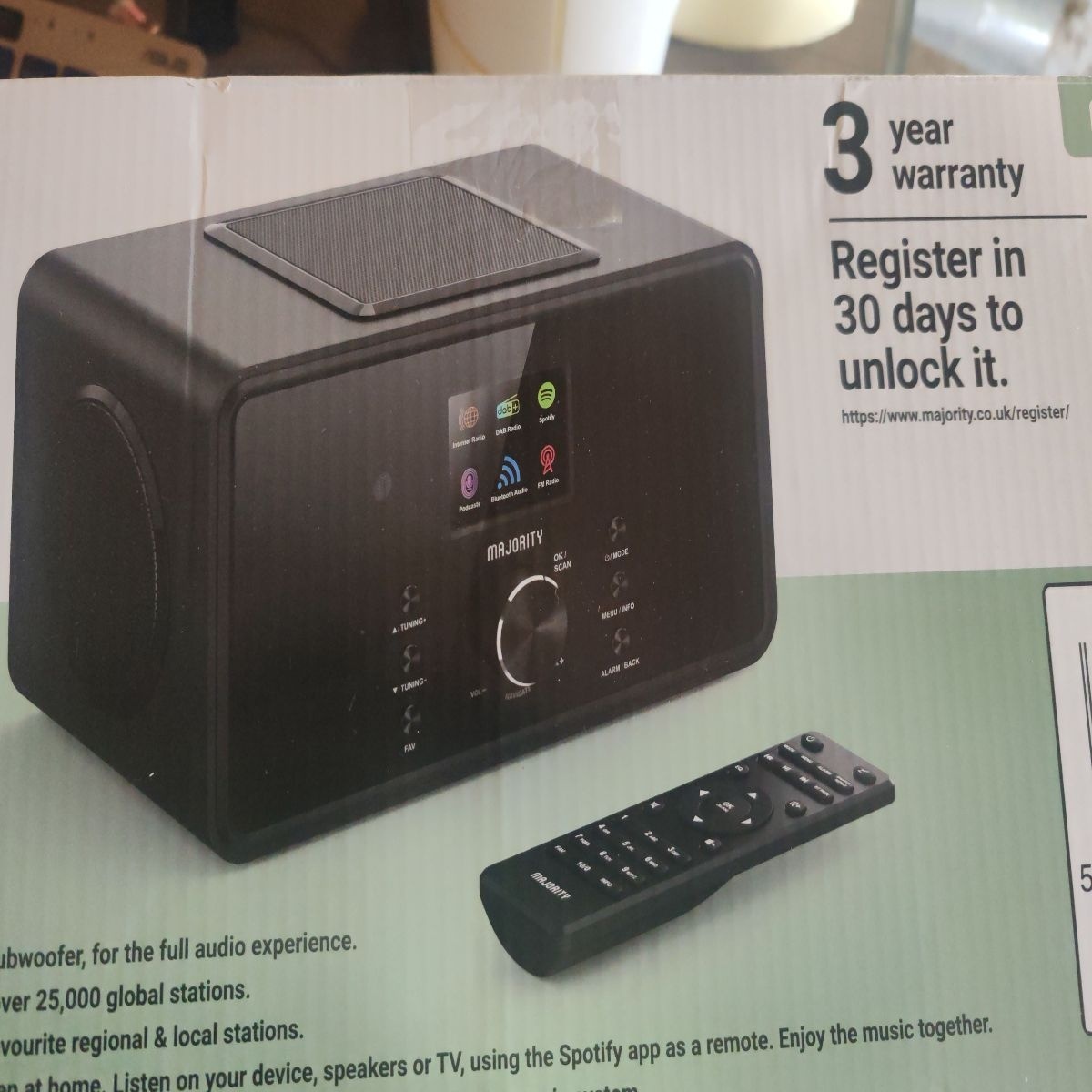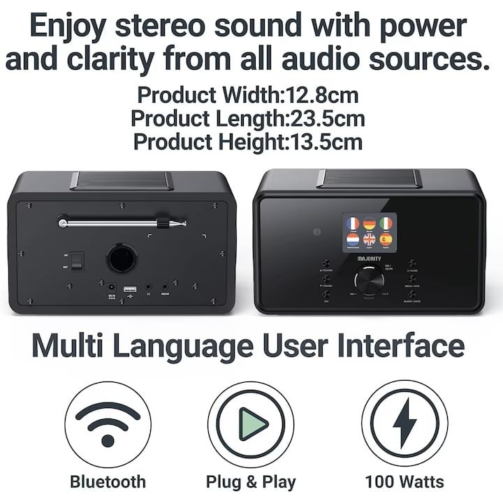 Radio internet global Bluetooth DAB+, Majority, 2.1, cu subwoofer integrat, 100 W, Radio FM, Spotify Connect, telecomanda, negru, Resigilat, Grad A