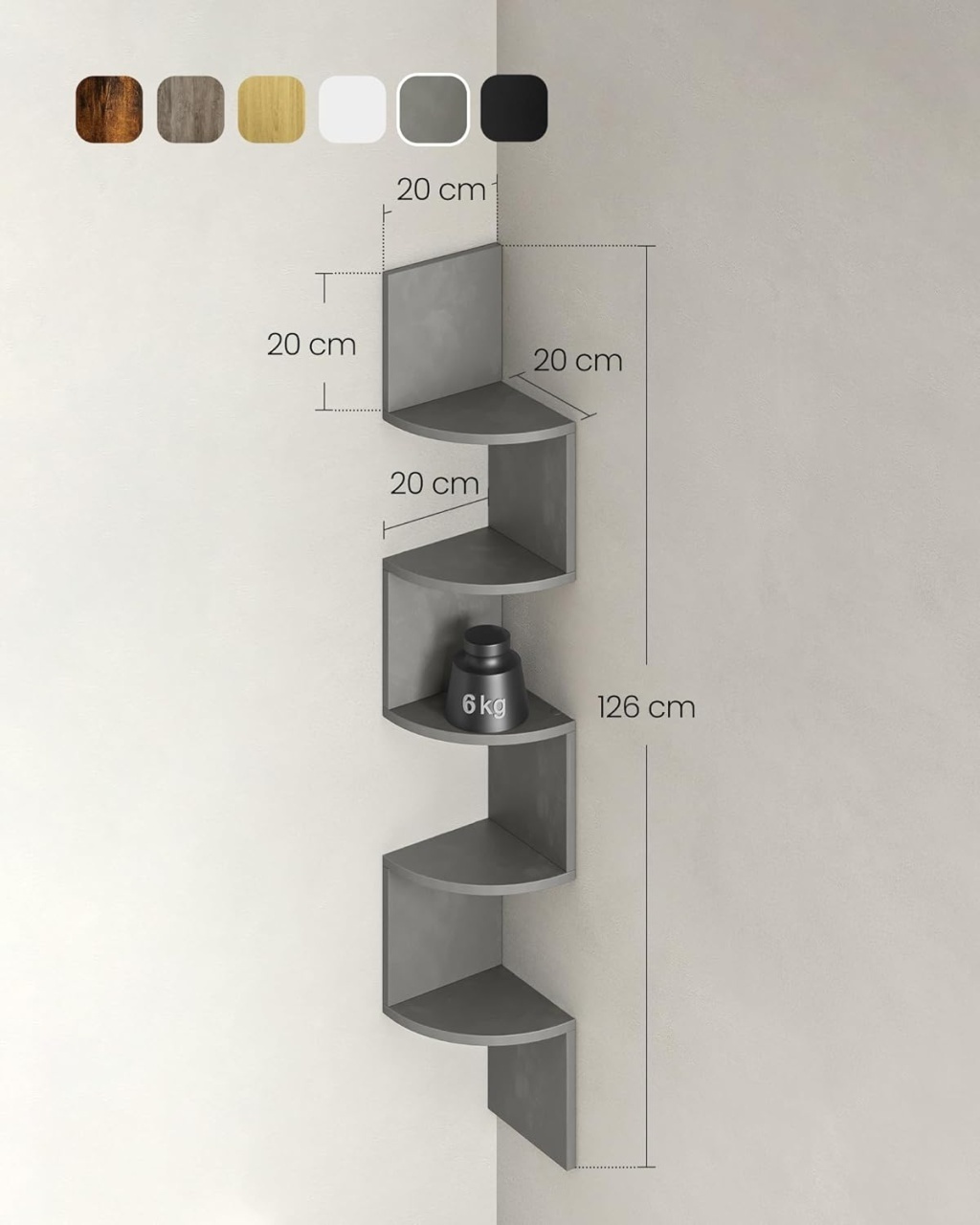 Raft de perete Vasagle, PAL, gri, 20 x 20 x 126 cm
