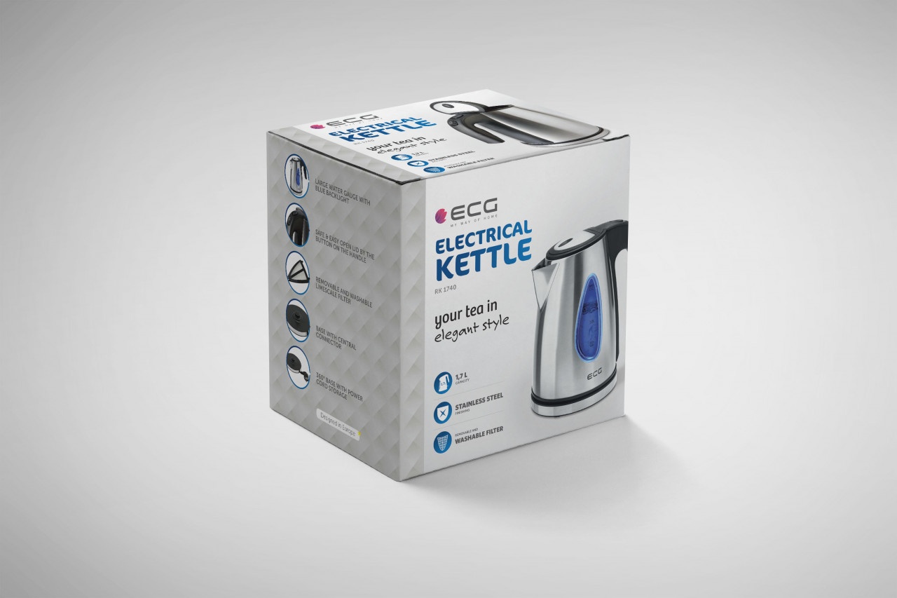 RESIGILAT - Cana electrica fierbator ECG RK 1740, 2000 W, 1,7 L, otel inoxidabil