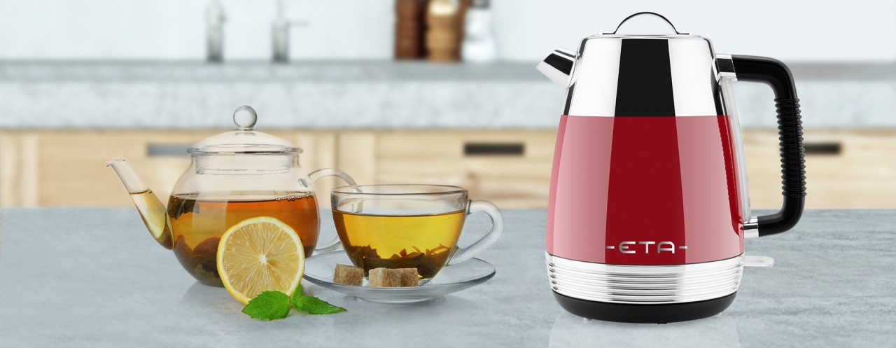RESIGILAT - Cana electrica fierbator ETA Storio 918630, 2150 W, 1.7 L, otel inoxidabil, design retro, rosu