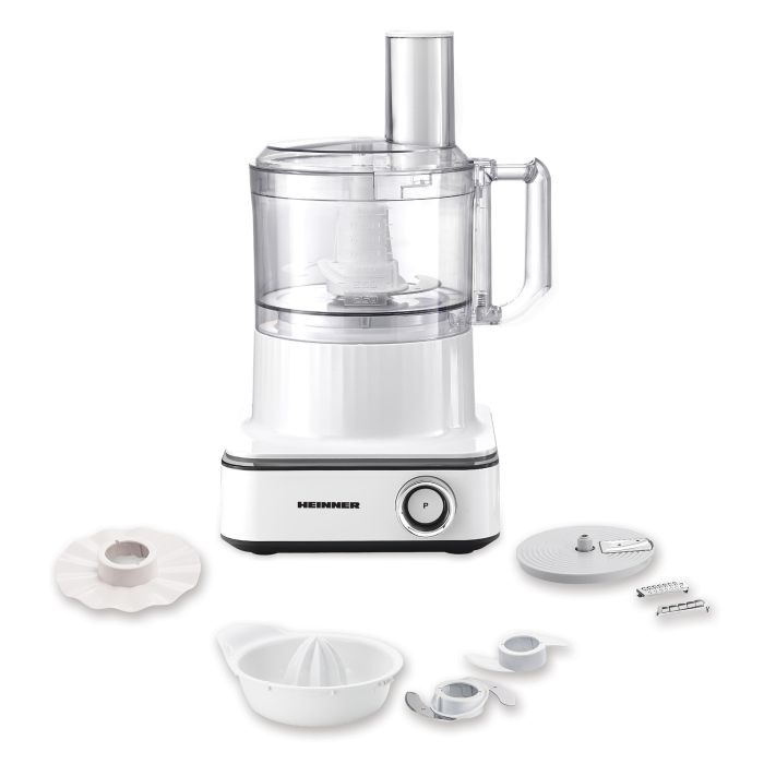 ROBOT DE BUCATARIE HEINNER FINEGOURMET HFP-K1000WP, 1000W, 6 VITEZE + PULSE, BOL PROCESARE: 2.3L, LAME INOX, ACCESORII: DISC FRAMANTARE, 3 LAME, DISC EMULSIFIERE, CANA PLASTIC 1.5L, STORCATOR CITRICE, CARCASA ALBA VOPSITA IN ULEI