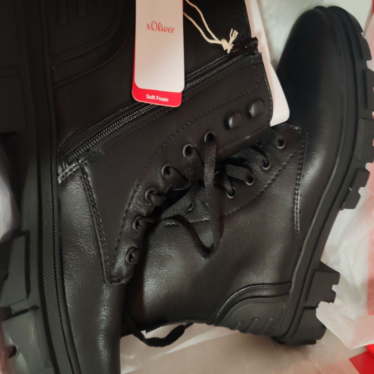 s.Oliver, Ghete din piele ecologica cu toc masiv, Negru, Negru stins, 36, Resigilat, Grad A