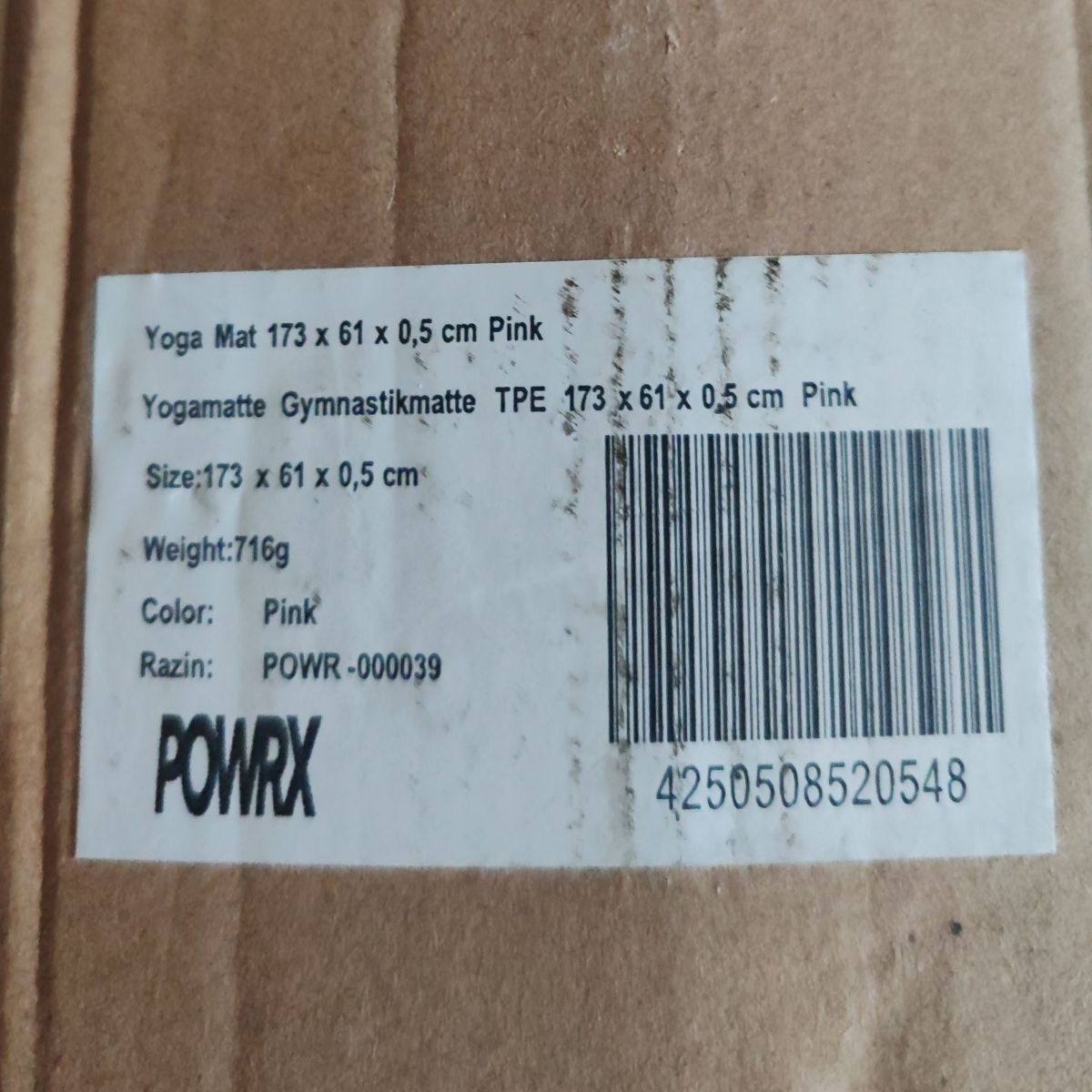 Saltea pentru antrenament si husa de protectie, pentru yoga, fitness, aerobic, pilates, exercitii la sol, POWRX, Antiderapant, Spuma de cauciuc, 173x61x0.5 cm, Roz, Resigilat, Grad A