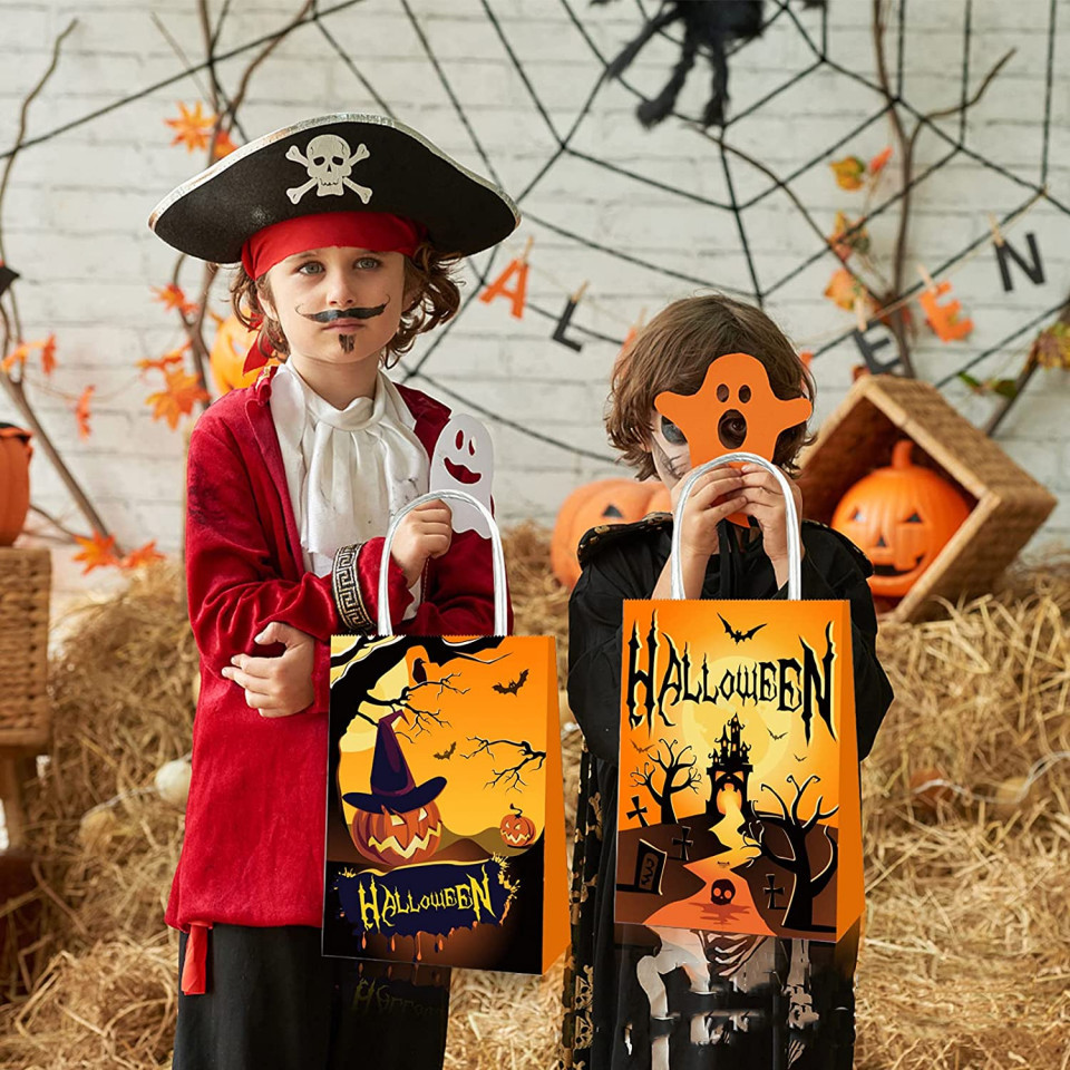 Set 12 pungi de cadou Halloween LITOU, hartie, 16 x 21 x 8 cm