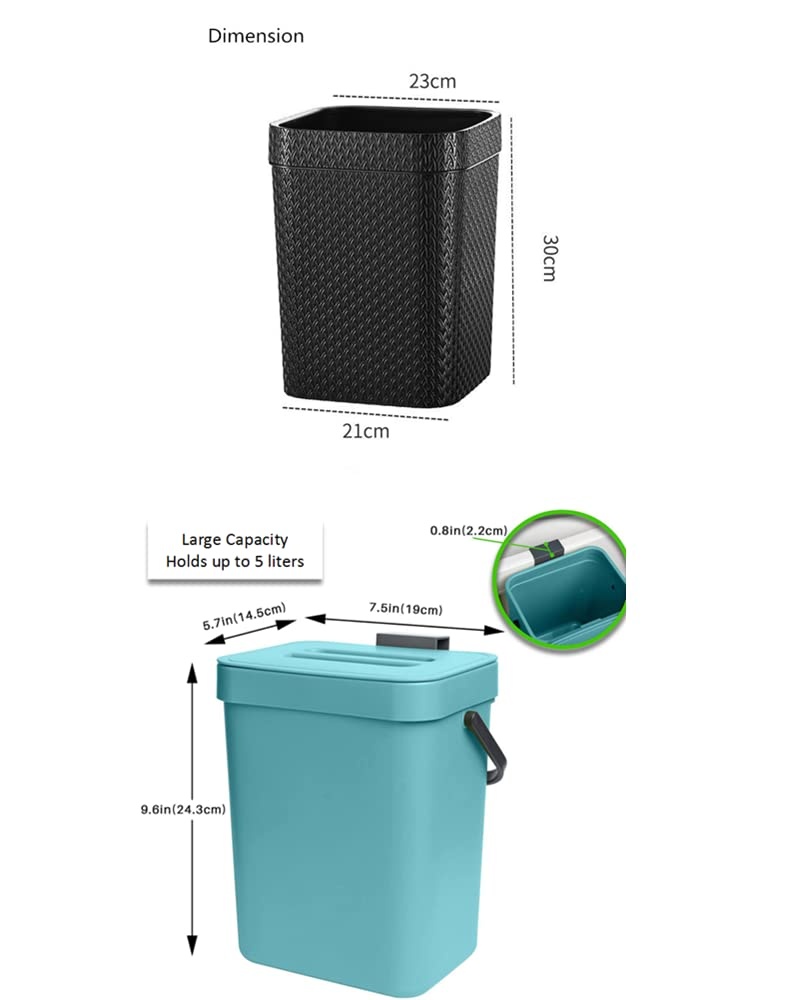 Multifuncționalitate: Pot fi utilizate în diverse încăperi, inclusiv baie, bucătărie, birou, dormitor sau orice alt spațiu unde ai nevoie de soluții de depozitare a deșeurilor.