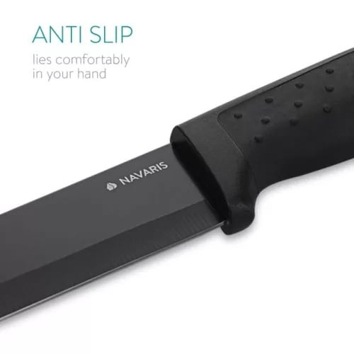 Set profesional de 5 cuțite de bucătărie Navaris din oțel inoxidabil, completate cu un cuțit de tăiere din ceramică. Lame ascuțite, durabile și rezistente la coroziune, ideale pentru tăiere precisă. Design ergonomic, confortabil și elegant, ideal pentru orice bucătărie.