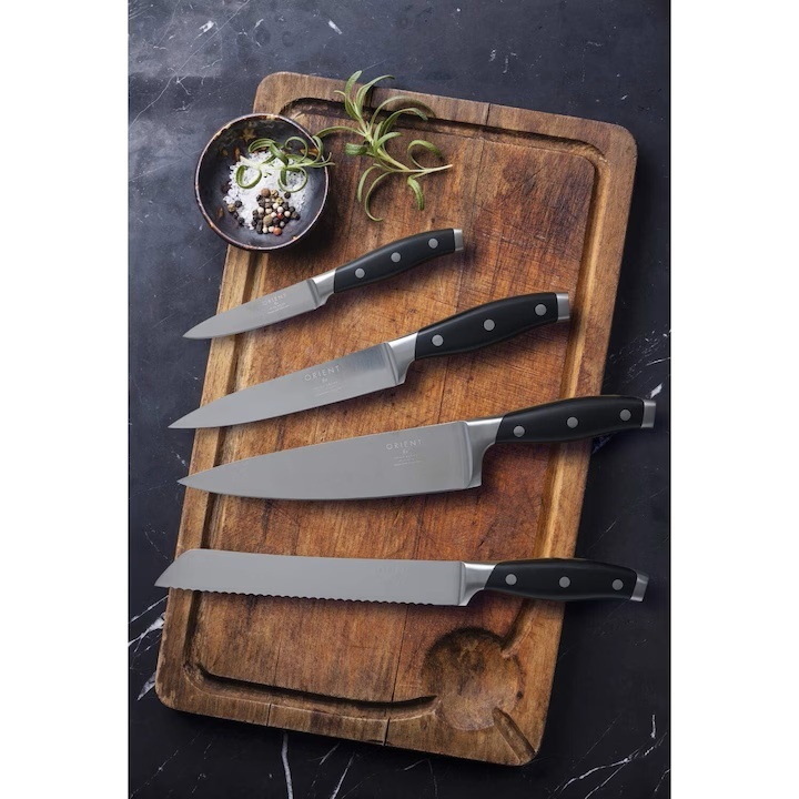 - Un incredibil set de cutite din 4 piese - cutit multifunctional german. Claritate incredibila, testata cu laser si finisata cu o slefuire precisa de 15V. O colectie de trei cutite de calitate profesionala pentru sarcinile de zi cu zi in bucatarie.