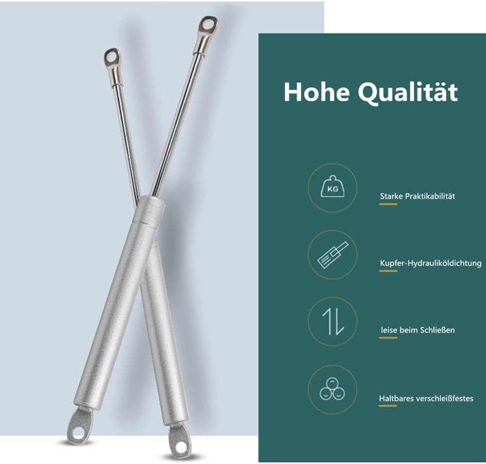 Presiune: 150N; Capacitate maximă de încărcare: 15kg/33.07lb. Lungime retractabila: 0-90 mm lungime. Lungimea totală a ascensorului de gaz este de 258 m. Pachet de 2.Material: arcul de gaz pentru mobilier este fabricat din oțel inoxidabil de înaltă calitate, miez hidraulic în vid, tijă de ridicare îndrăzneață, cap rezistent la uzură, durabil și practic.