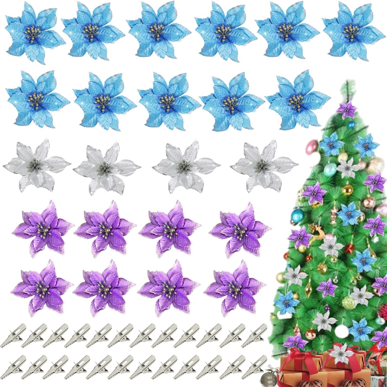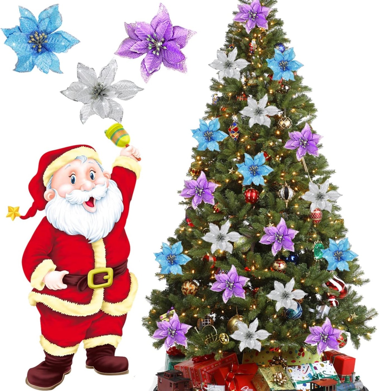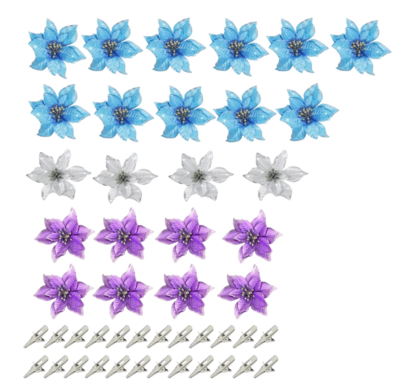 Culori festive variate: Setul include flori în nuanțe armonioase, multicolore, perfect combinate pentru a crea un contrast echilibrat și atrăgător în bradul de Crăciun. Se potrivesc atât decorurilor clasice, cât și celor moderne sau tematice.