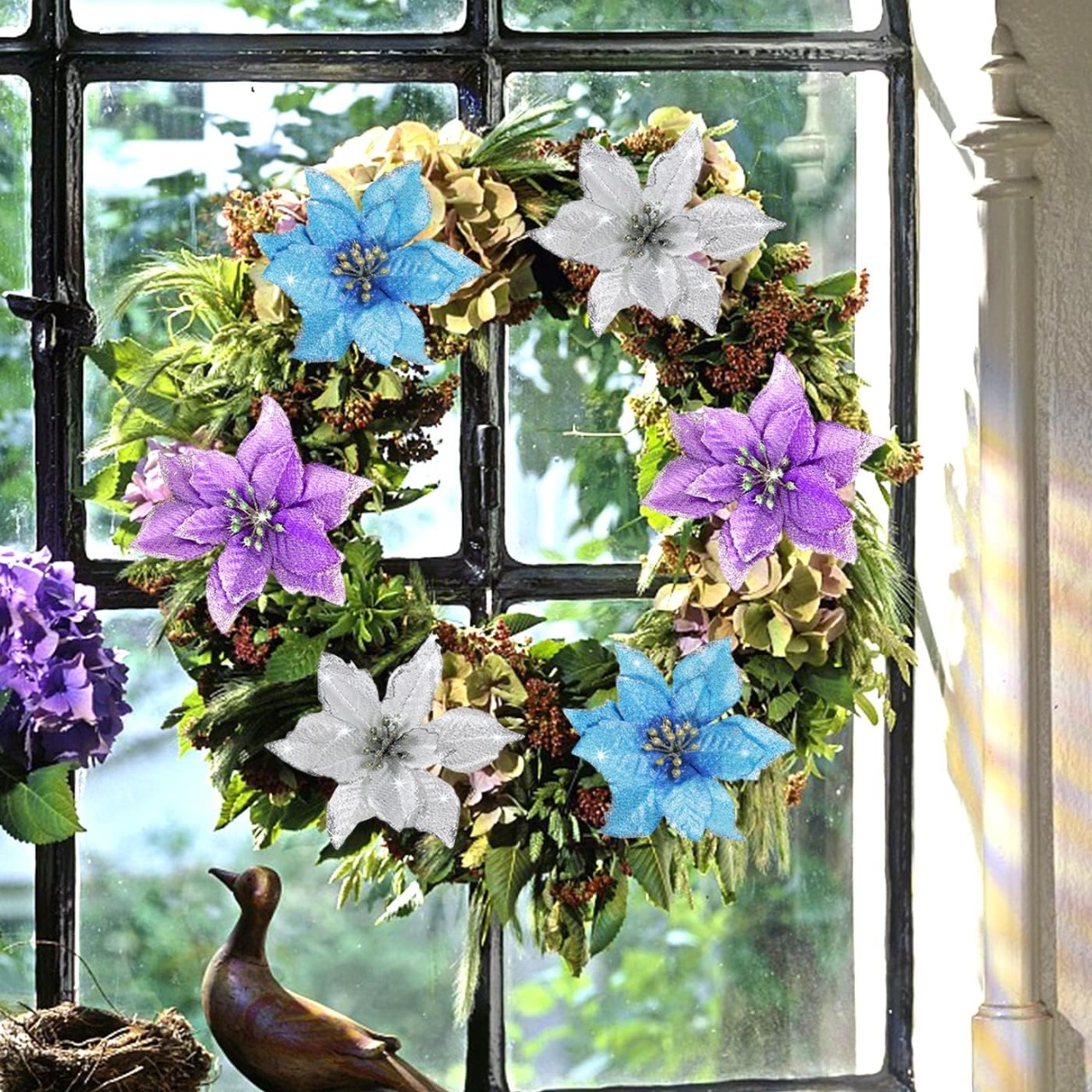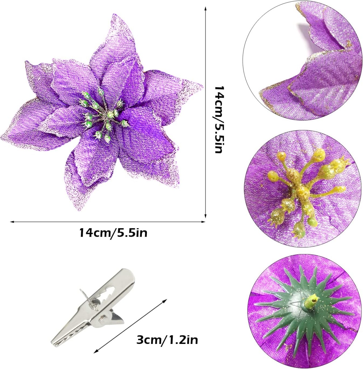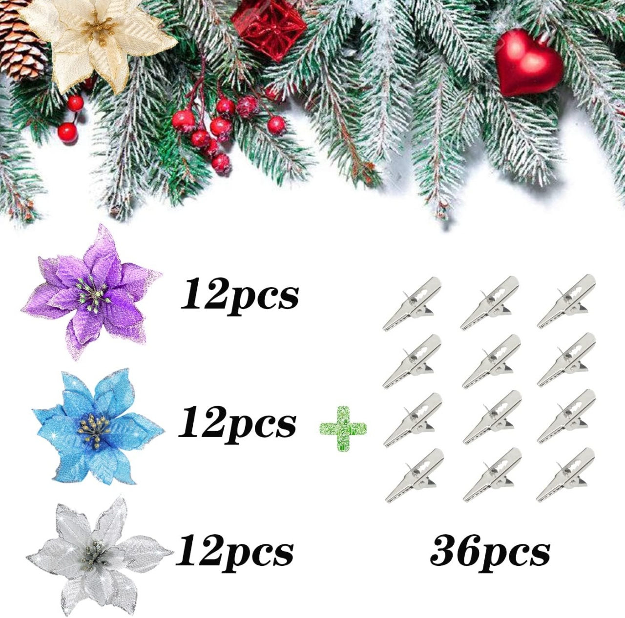 Culori festive variate: Setul include flori în nuanțe armonioase, multicolore, perfect combinate pentru a crea un contrast echilibrat și atrăgător în bradul de Crăciun. Se potrivesc atât decorurilor clasice, cât și celor moderne sau tematice.