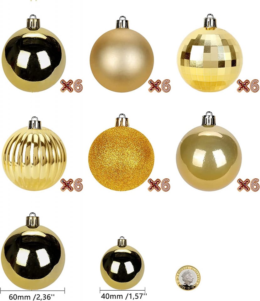Set de 36 globuri pentru bradul de Craciun BLAZOR, plastic, auriu, 40 mm