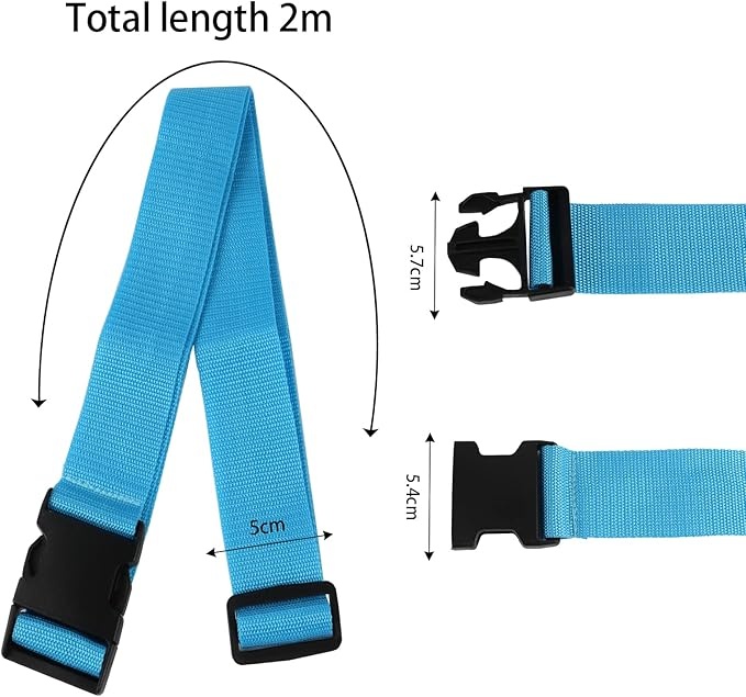 - Dimensiuni optime: Fiecare curea măsoară 5 cm lățime și 200 cm lungime, fiind suficient de lungă pentru a fixa și susține valizele de diferite dimensiuni.