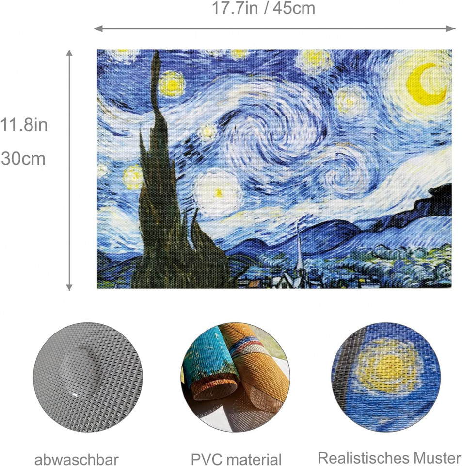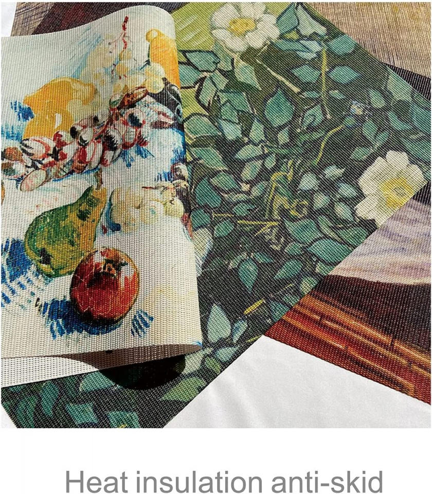 Descriere placemat: material produs: 30cm × 45cm. Acest covor este realizat din 70% PVC și 30% fibre de poliester, combinate cu o țesătură de înaltă densitate, astfel încât să nu se estompeze ușor și să dureze mai mult. Este rezistent la temperaturi ridicate, este suficient să protejați masa de temperaturi ridicate.