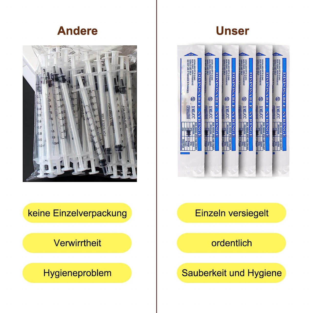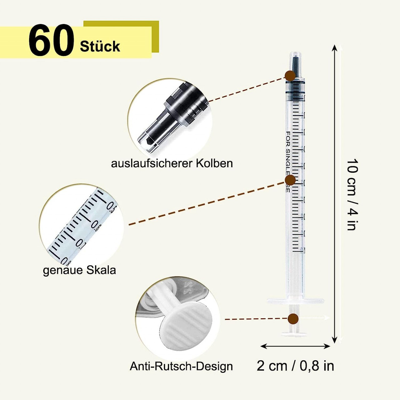 Mișcare lină a pistonului, etanșare densă, putere mare de aspirație și depozitare ușoară a seringilor cu capace după utilizare. Veți primi 60 de seringi fără ac de 1 ml, 10 cm lungime, suficiente pentru utilizare sau ca înlocuitor. Seringile sunt fabricate din plastic, groase și rezistente, iar fiecare seringă este sigilată individual, igienică, ușor de operat. Pentru experimente științifice, hrana animalelor, irigare etc. măsurarea lichidelor precum parfumuri, uleiuri, cerneluri tipografice, lubrifianți etc. Carcasă transparentă de pulverizare cu marcaje clare de măsurare pentru citire ușoară.
