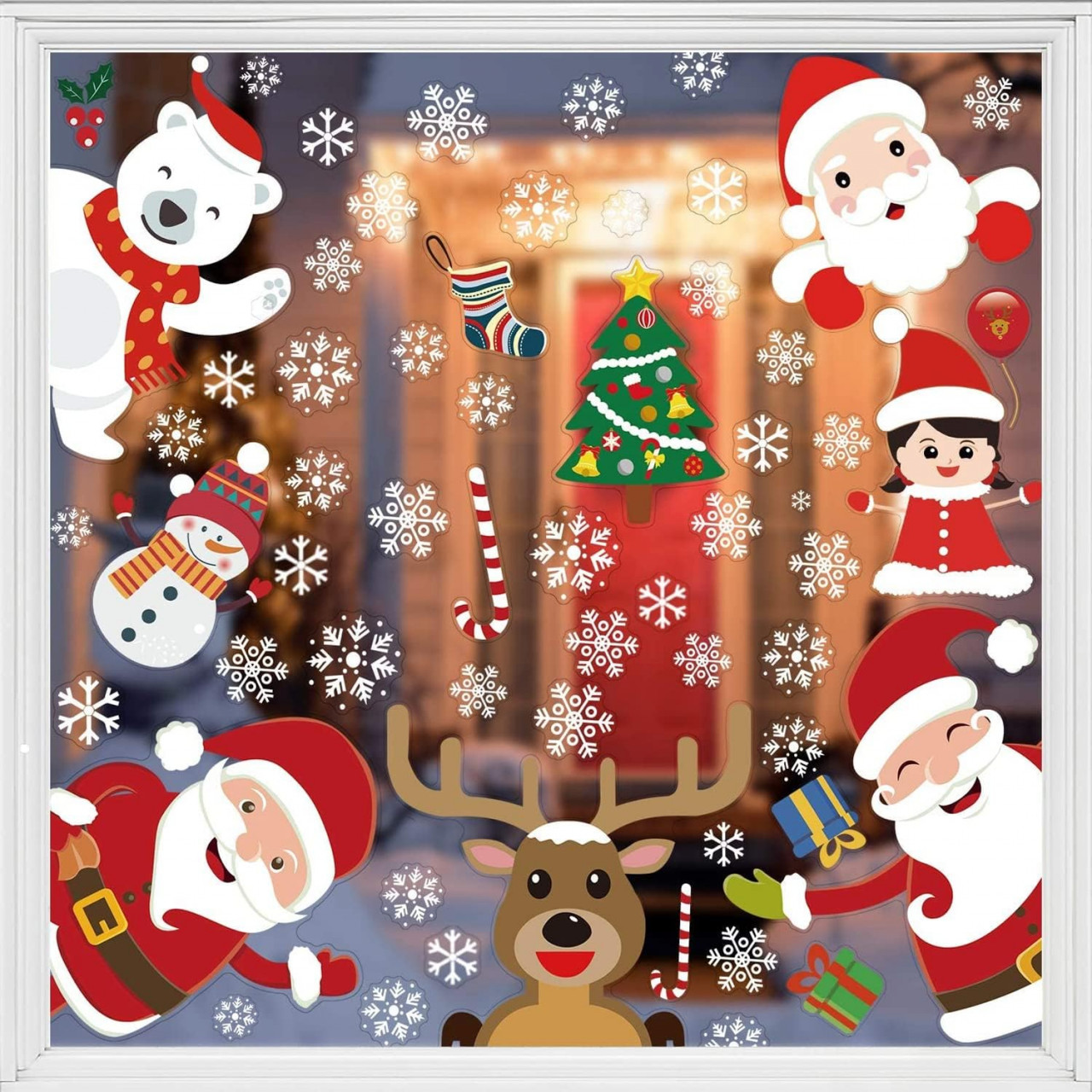 Fereastră de Crăciun de mare valoare: 8 foi de autocolante pentru fereastra de Crăciun vin cu elemente adorabile de Crăciun, fulgi de zăpadă, Moș Crăciun, om de zăpadă, căprioară, pom de Crăciun, cutie cadou, ciorapi și așa mai departe, creează o atmosferă de iarnă de minuni. Decoratiuni atractive de Craciun: Decoreaza-ti ferestrele sau usile de sticla cu aceste degete adorabile, lumineaza-ti casa si mai ales un plus extraordinar pentru orice decoratiuni tematice de Craciun, decoratiuni pentru ferestre de Craciun, consumabile pentru petrecerea de Craciun. Calitate premium: Autocolantele pentru ferestrele de Crăciun sunt fabricate din materiale ecologice, non-toxice, robuste și reutilizabile. Nu deteriorează ferestrele atunci când ies de pe fereastră pentru a se agăța sau pentru a-și schimba poziția.