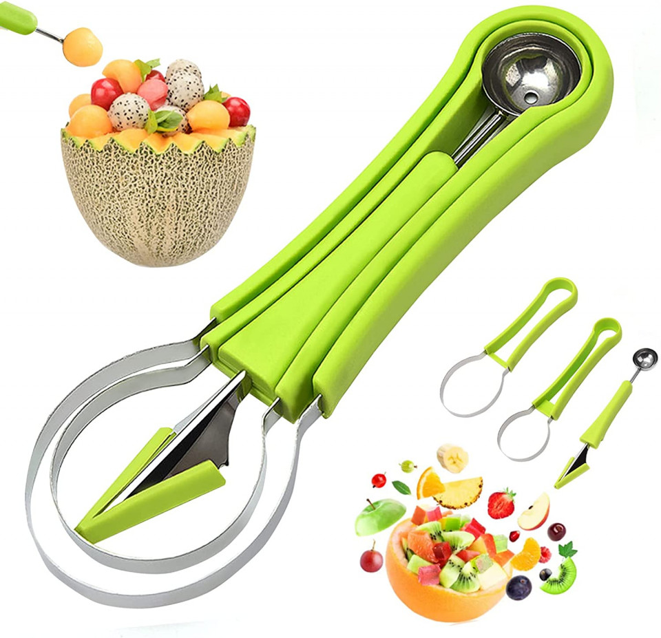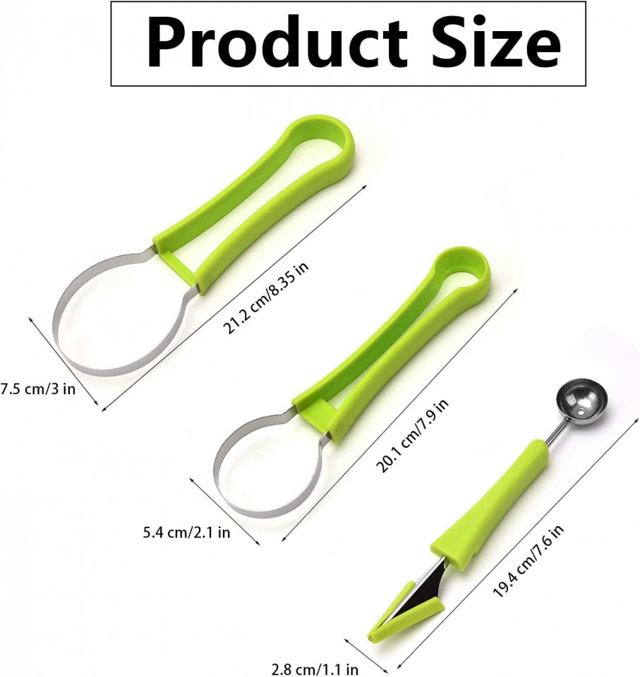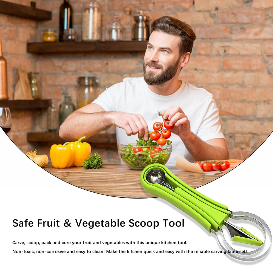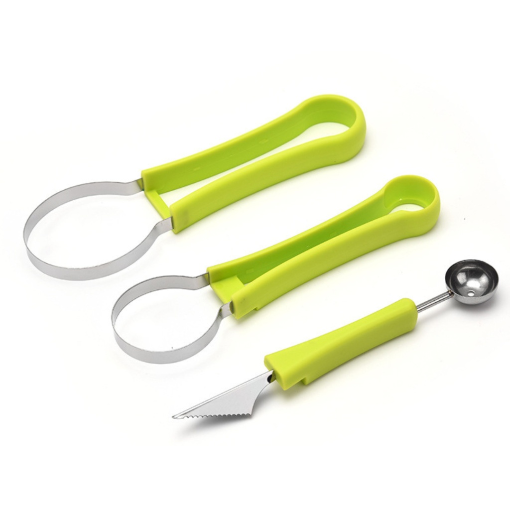 Set instrumente de sculptura in fructe Cisolen, plastic/otel inoxidabil, verde/argintiu, 21,2 x 7,5 cm/20,1 x5,4 cm/ 19,4 x 2,8 cm