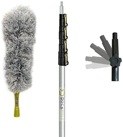 Set maner telescopic cu pamatuf DocaPole, aluminiu/microfibra, argintiu/negru/gri, 9.1 m