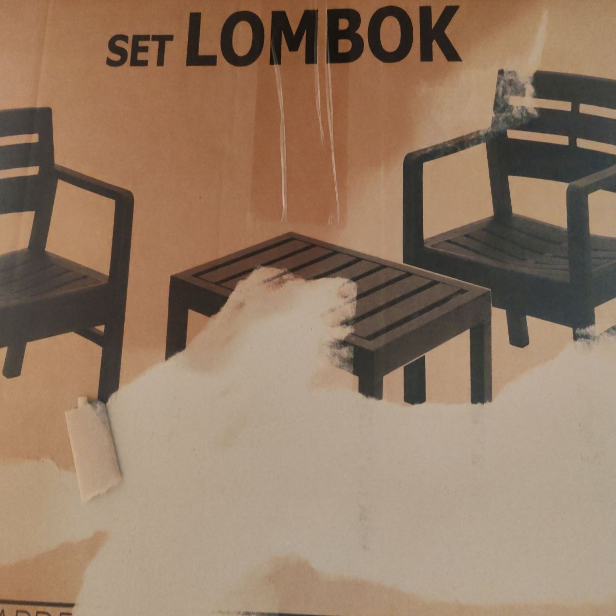 • Set mobilier terasa/gradina, Progarden, LOMBOK, 3 piese, polipropilena, antracit, 2 scaune 63x58x74 cm, masa 74x55x38 cm, cu perne incluse, Resigilat, Grad A - Img 1