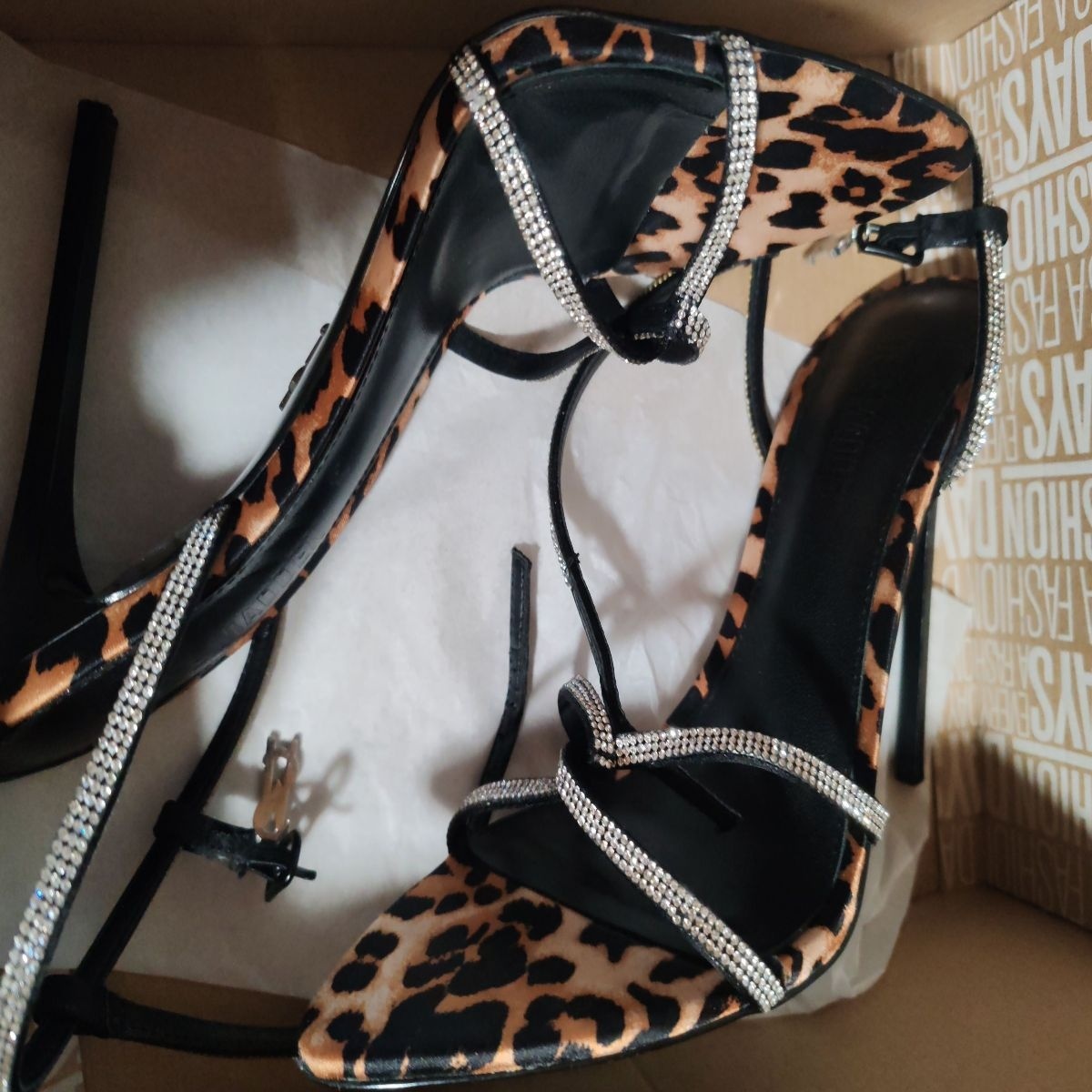 Aceste sandale cu toc înalt de la brandul Steve Madden combină accente elegante şi detalii de impact: imprimeul animal print (leopard/satin) și aplicarea de strasuri creează un look sofisticat‑“statement” perfect pentru ocazii speciale.