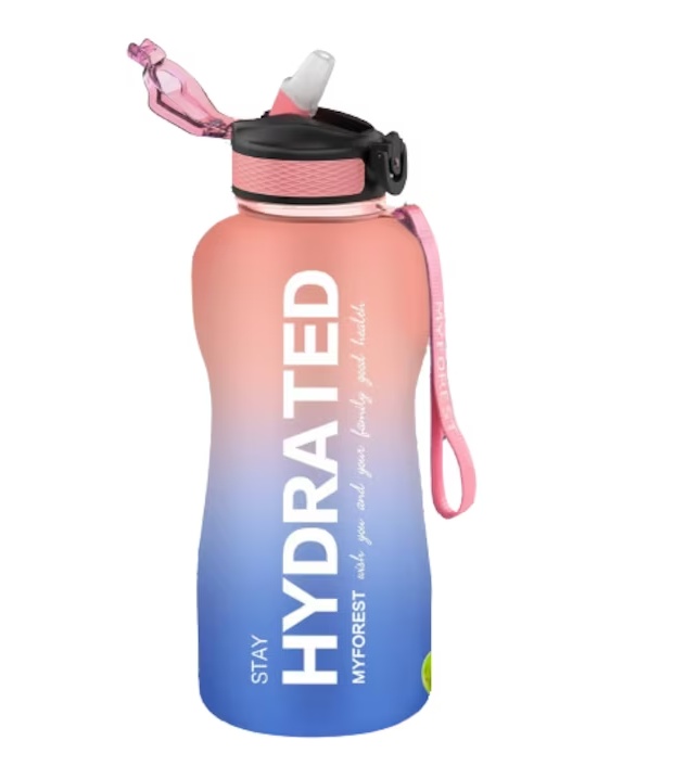 Capacitate Generoasă: Cu o capacitate de 2.2 litri, sticla de apă Myforest îți oferă suficient lichid pentru a-ți menține hidratarea pe parcursul întregii zile, fără a fi nevoie să reumpli constant. Este soluția perfectă pentru a-ți susține nivelul optim de hidratare, fie că ești la birou, la sală sau în mișcare.