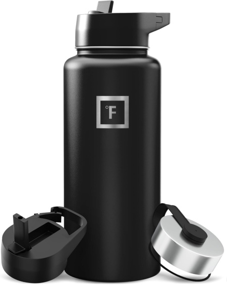 Sticlă termică din oțel inoxidabil IRON°FLASK cu 3 capace – 950 ml, negru