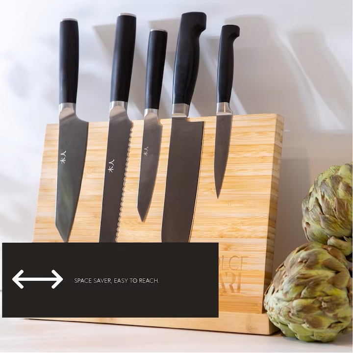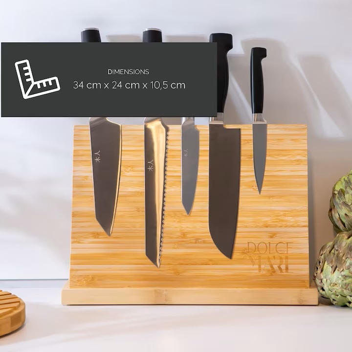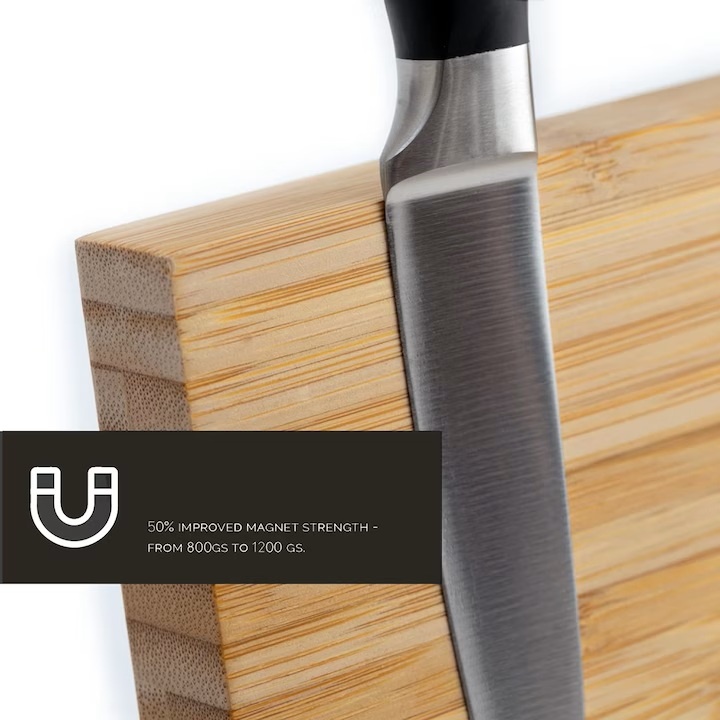 Suport magnetic pentru cutite, Dolce Mare, doua fete din bambus, XXL, 35 x 25x11 cm