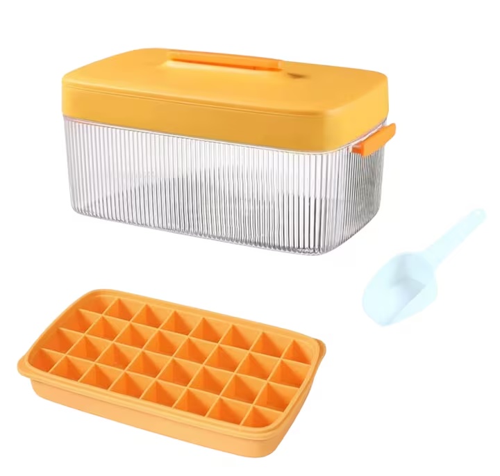 Tava pentru cuburi de gheata cu capac, silicon, galben, 23.8 x 12.8 x 11.5 cm