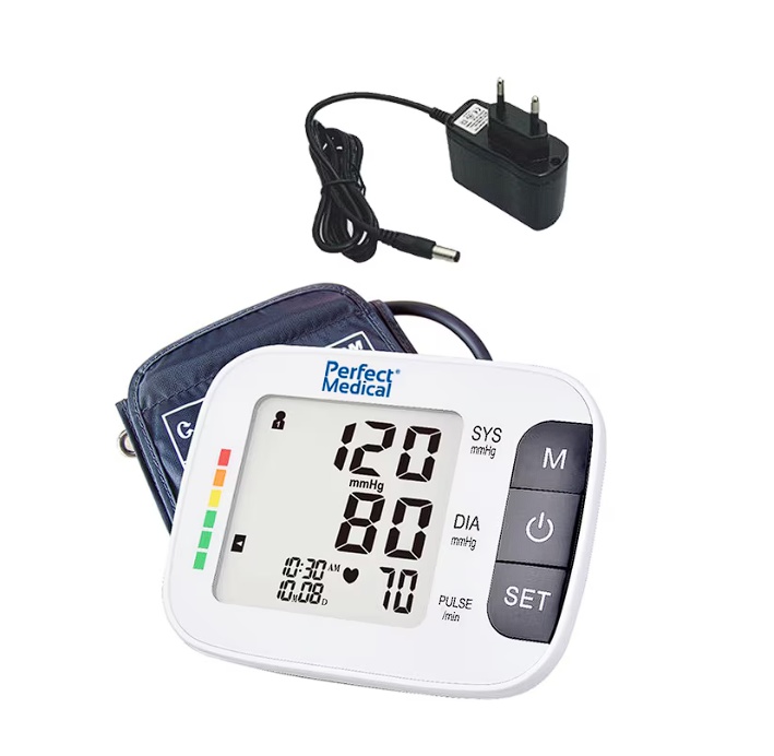 Tensiometru Profesional de brat , complet automat Perfect Medical cu adaptor la priza , avizat , Indicarea valorilor masurate in conformitate cu parametrii stabiliti de Organizatia Mondiala a Sanatatii (OMS), Resigilat, Grad A