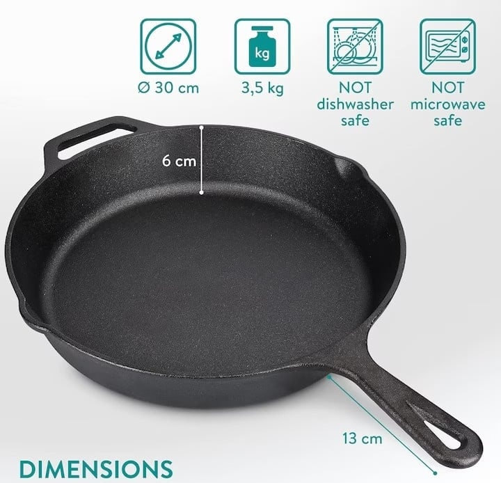 Tigaie adanca rotunda din fonta cu maner Navaris, 30 cm, Resigilat, Grad A