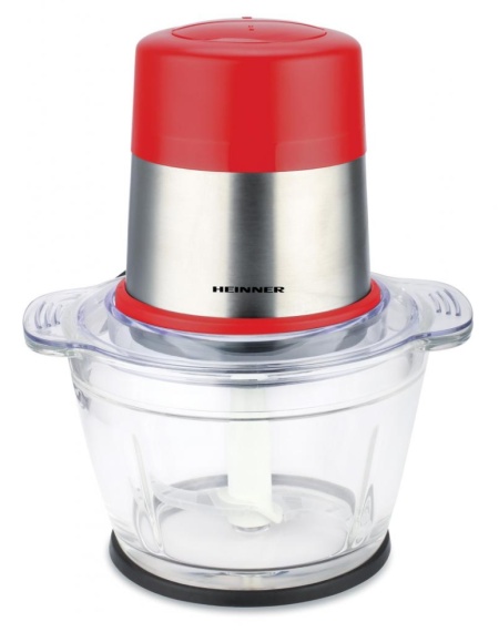 Tocator de legume Heinner HMC-D300RD, Putere: 300W, Bol de sticlă 1L, Lame din inox, 2 viteze, Ornamente din inox, Culoare: rosu, Garantie: 36 luni