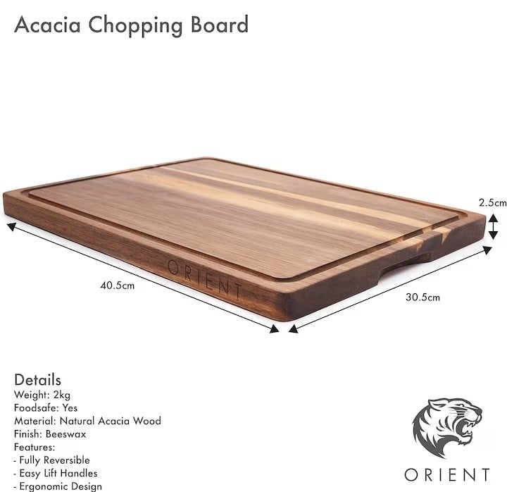 Tocator din Lemn Natural de Salcam, Orient, Canelura pentru scurgerea sucului, 40.5 x 30.5 cm, Resigilat, Grad A