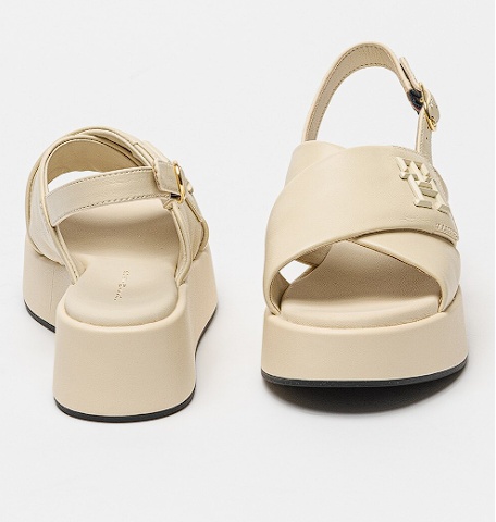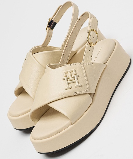 Tommy Hilfiger, Sandale din piele cu talpa wedge si barete incrucisate, Bej deschis, 38, Resigilat, Grad A