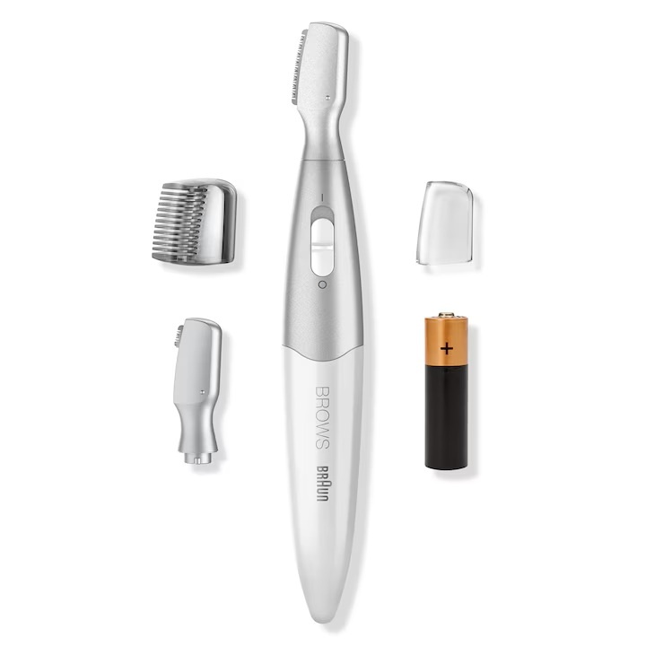 Trimmer de precizie pentru sprancene Braun FG1106, incarcare pe baterie, Alb/Argintiu, Resigilat, Grad A