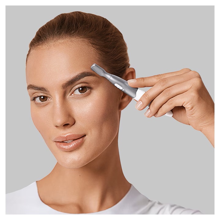 Trimmer de precizie pentru sprancene Braun FG1106, incarcare pe baterie, Alb/Argintiu