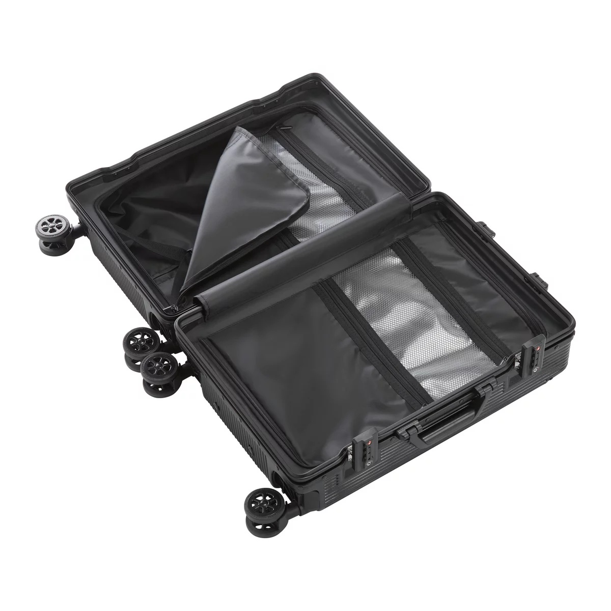 - Caracteristici speciale: mâner telescopic reglabil pe înălțime, sistem de roți cu rotire la 360°, încuietoare TSA, buzunare interioare, mâner de transport