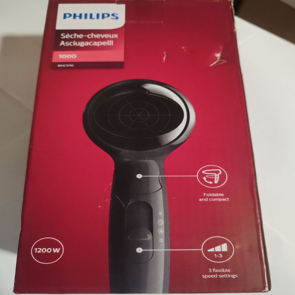 Uscator de par Philips EssentialCare BHC010/10, 1200 W, 3 setari temperatura, maner pliant, Negru, Resigilat, Grad A