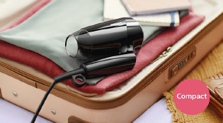 Acest uscator de par dispune de un maner pliabil. Prin urmare, uscatorul de par este mic si compact, usor de depozitat chiar si in cele mai mici spatii si poate fi luat practic oriunde. |