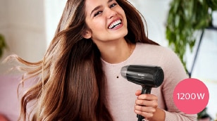 Noul uscator de par Philips Essential Care este aspectuos, compact si puternic. Puterea de 1200 W iti permite sati usuci parul delicat si rapid. Setari flexibile de ingrijire sunt concepute pentru a indeplini diferite cerinte de uscare si a oferi ingrijire suplimentara.