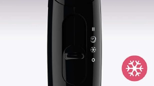Acest uscator de par compact iti ofera 3 setari preselectate de temperatura si viteza, pentru uscare cu aer rece, ingrijire sau uscare rapida. |